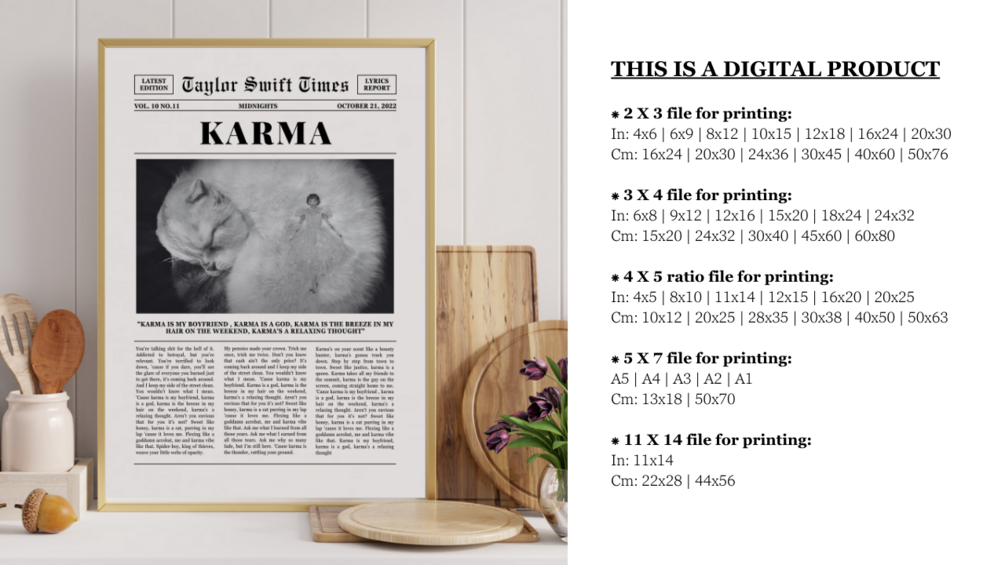 Karma Digital Poster, Retro Newspaper Print, Lyrics Poster Gift, Retro Dorm Room Decor, Taylor Swift Song Poster